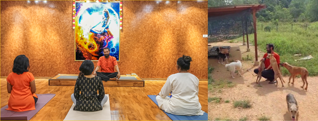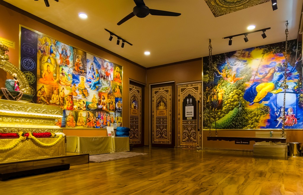 Mahakaal hall is the entrance hall housing Sri Sri Bholenath, Sri Sri Kashi Vishweshwari, Kal Bhairav & other deities at the Altar. This hall is the Garbhgriha of the deities. It has been given as a Samarpana to the deities. It is also the protective space of Shivalaya Divyam Vidyalaya. Only seekers permitted by the deities will be allowed to walk into the space. You have to have pure intention & genuine seeking to enter this space. It is the space you purify yourself before you start your seeking. It is the space you make your offering to the deities. It is the space you surrender to the deities through Bakthi.