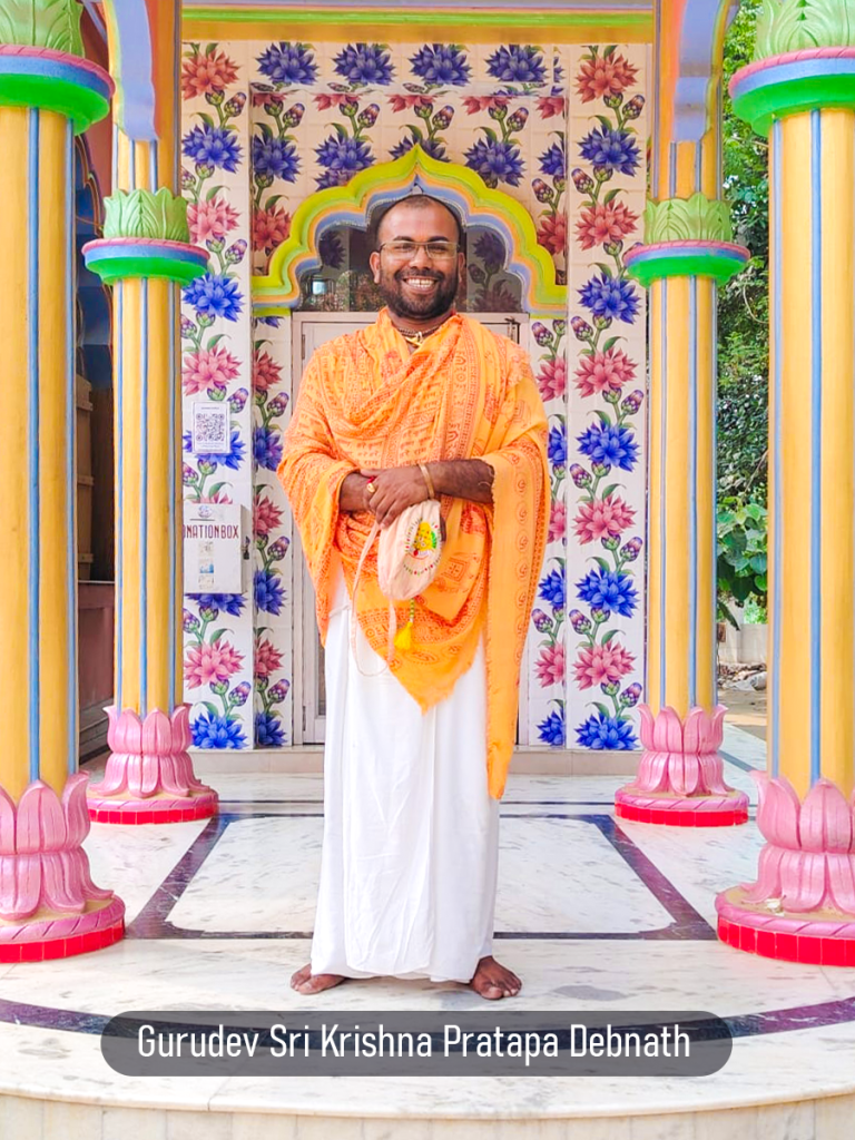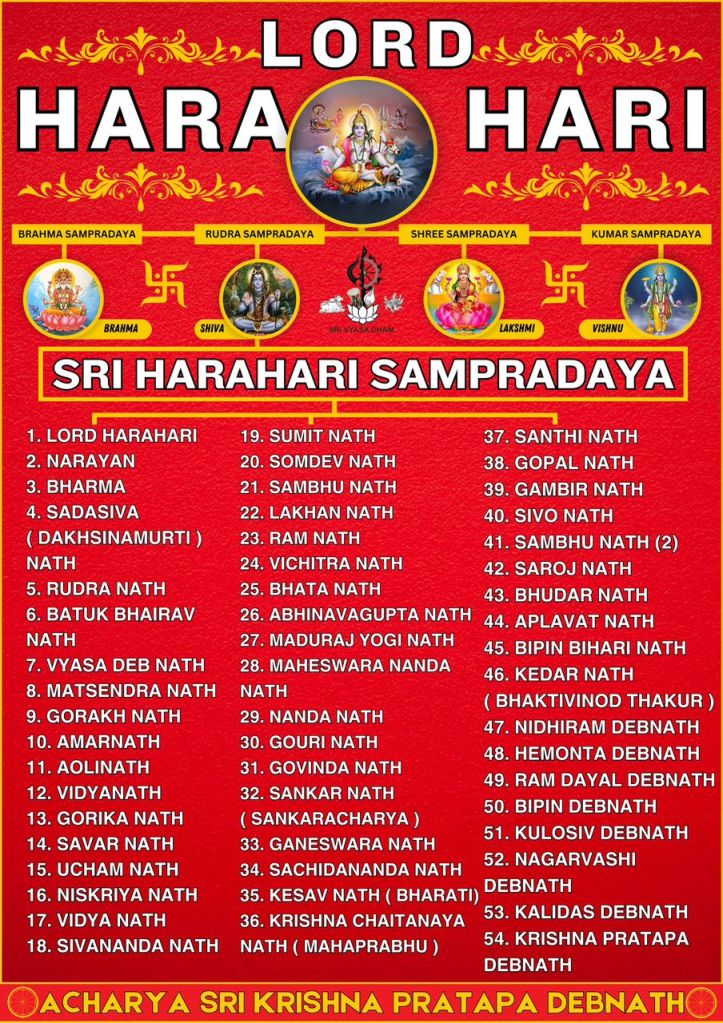 His Gurudevata is Sri Krishna Pratapa Debnath, who is the 54th and the present Acharyakaran of Sri HaraHari Sampradaya. Gurudeva Sri Krishna Pratapa Debnath comes from the lineage of Matsyendranath. At present, Gurudev has more than 5000 disciples from all around the world. The Bonafide spiritual master is he who has received the mercy of his Guru, who in turn is Bonafide because he has received the mercy of his Guru. This is called Guru Parampara. Gurudev’s eyes carry the wisdom of ages and the compassion of the universe itself. What sets Gurudev apart is not just the miracles themselves but the profound sense of love and compassion that permeates his every action. Gurudev’s miracles have touched the lives of entire communities and even nations. His charitable works, educational initiatives and humanitarian efforts have brought hope and relief to countless people in need. Whether through establishment of schools for underprivileged