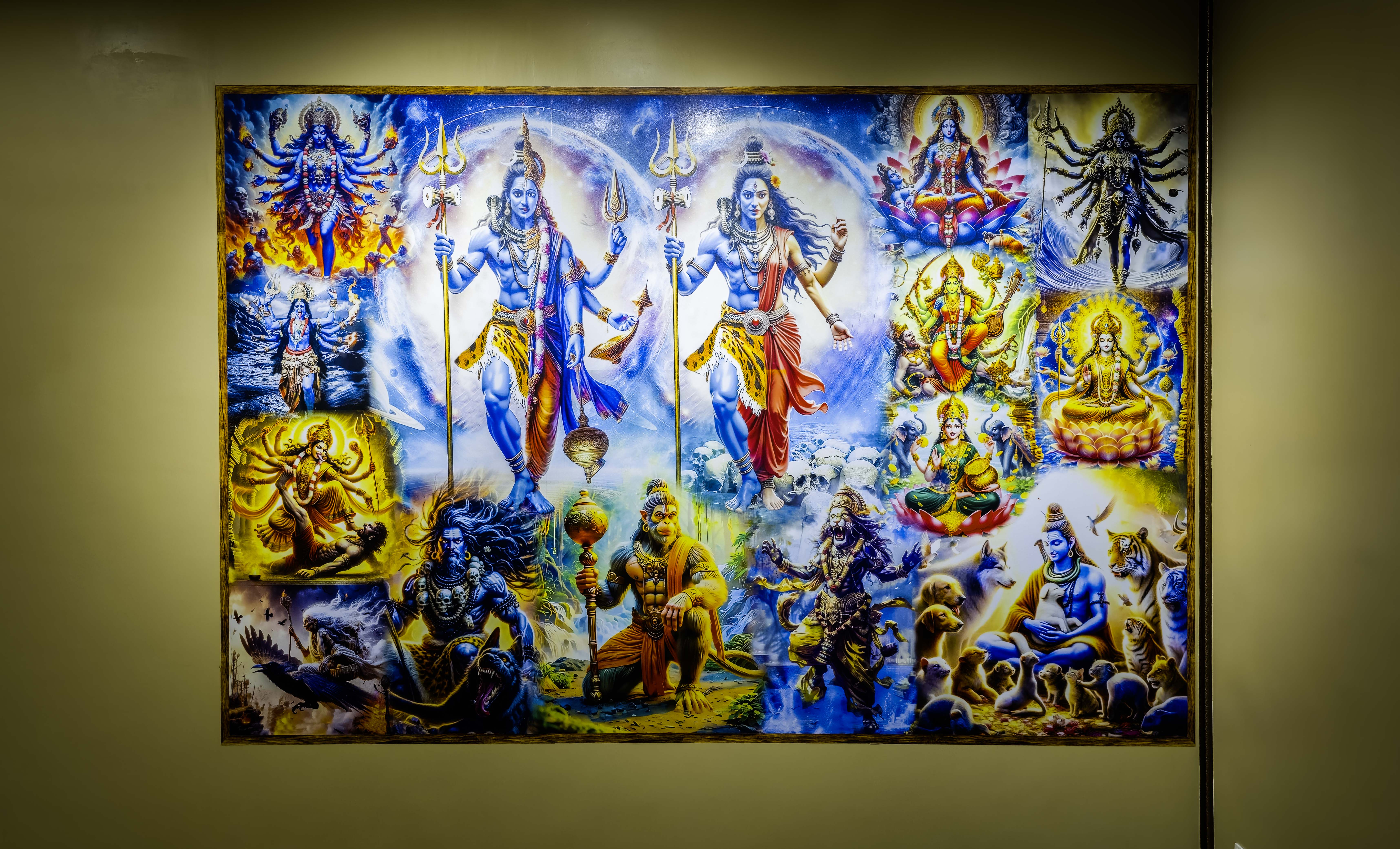 Mahakaal hall is the entrance hall housing Sri Sri Bholenath, Sri Sri Kashi Vishweshwari, Kal Bhairav & other deities at the Altar. This hall is the Garbhgriha of the deities. It has been given as a Samarpana to the deities. It is also the protective space of Shivalaya Divyam Vidyalaya. Only seekers permitted by the deities will be allowed to walk into the space. You have to have pure intention & genuine seeking to enter this space. It is the space you purify yourself before you start your seeking. It is the space you make your offering to the deities. It is the space you surrender to the deities through Bakthi.