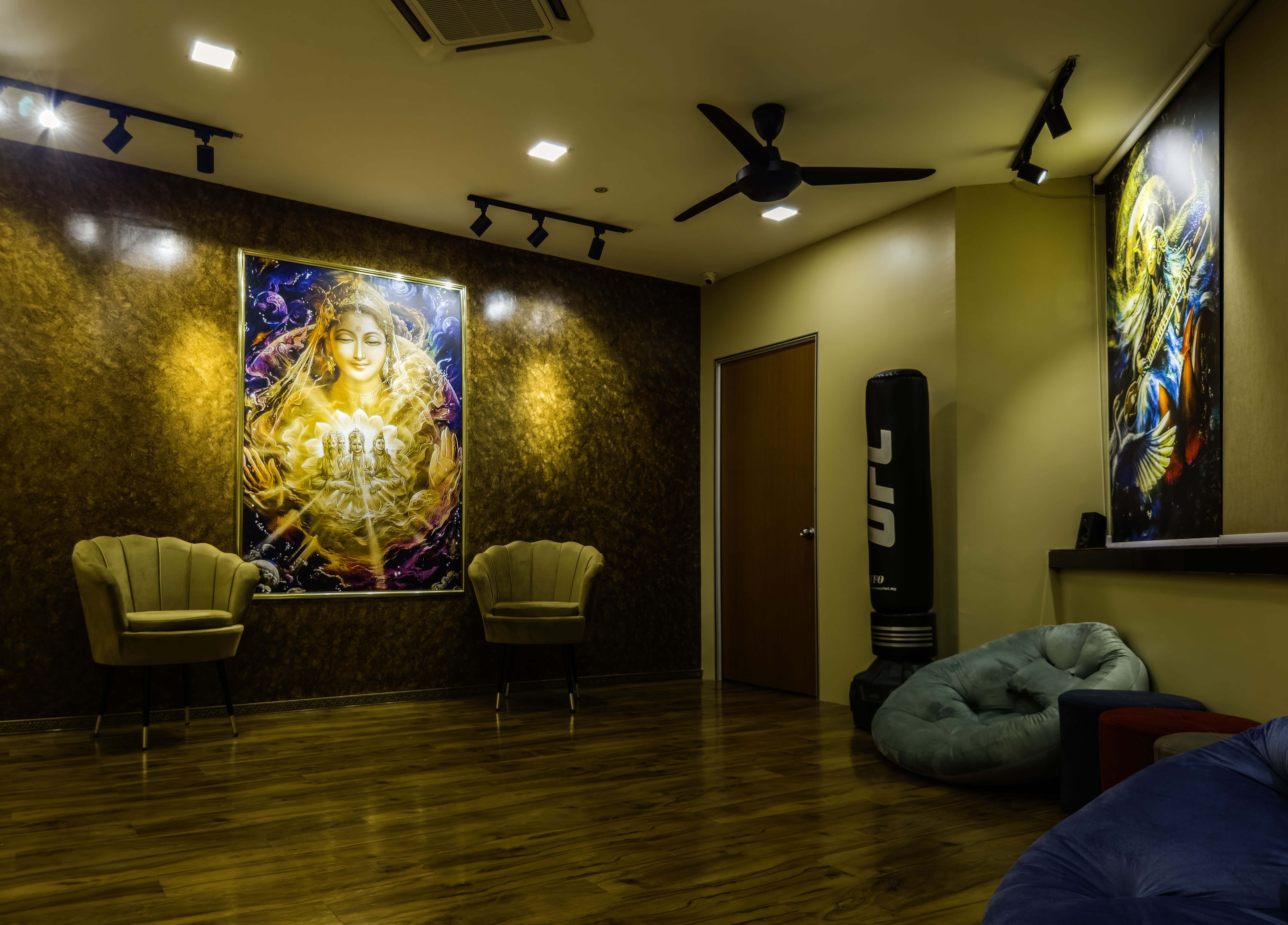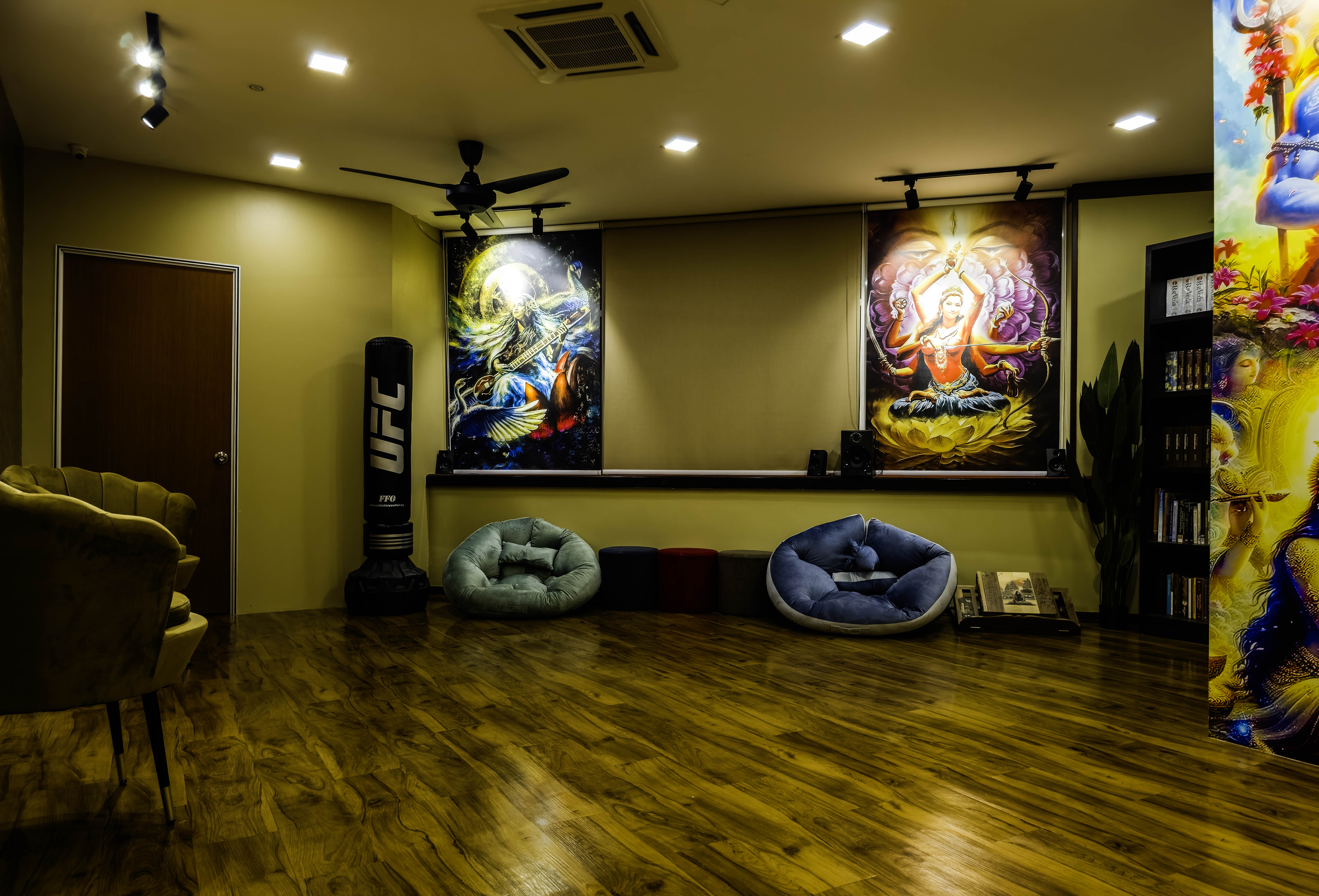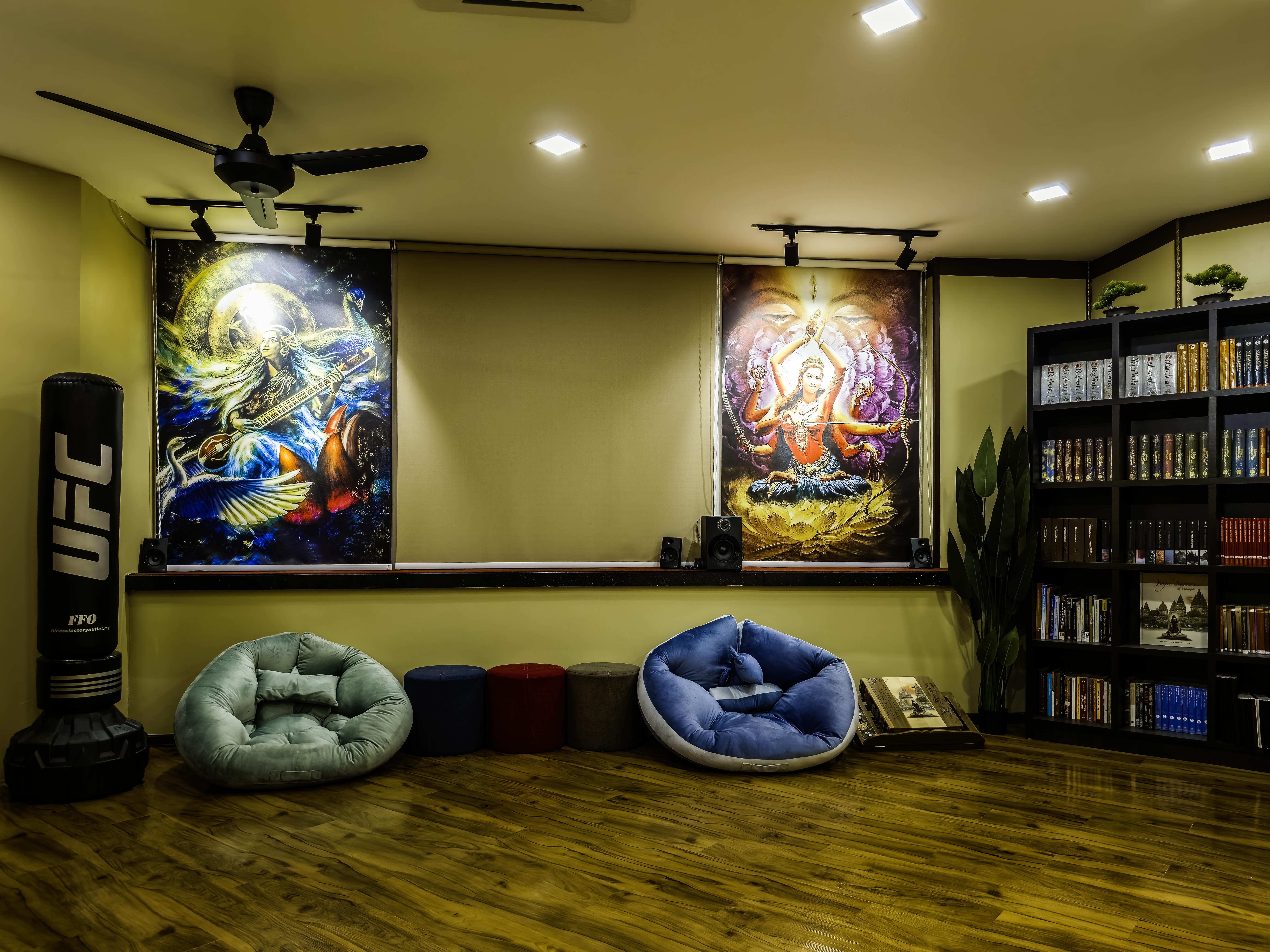 Sakthi hall is a smaller hall primarily for smaller group size of up to 10 clients, private or personal classes and soul healing sessions. The hall is designed with divine feminine energy for nurturing & healing. There will be a sense of calm, love, security & homecoming as soon as one enters the hall. It is the touch of a mother. Maa.