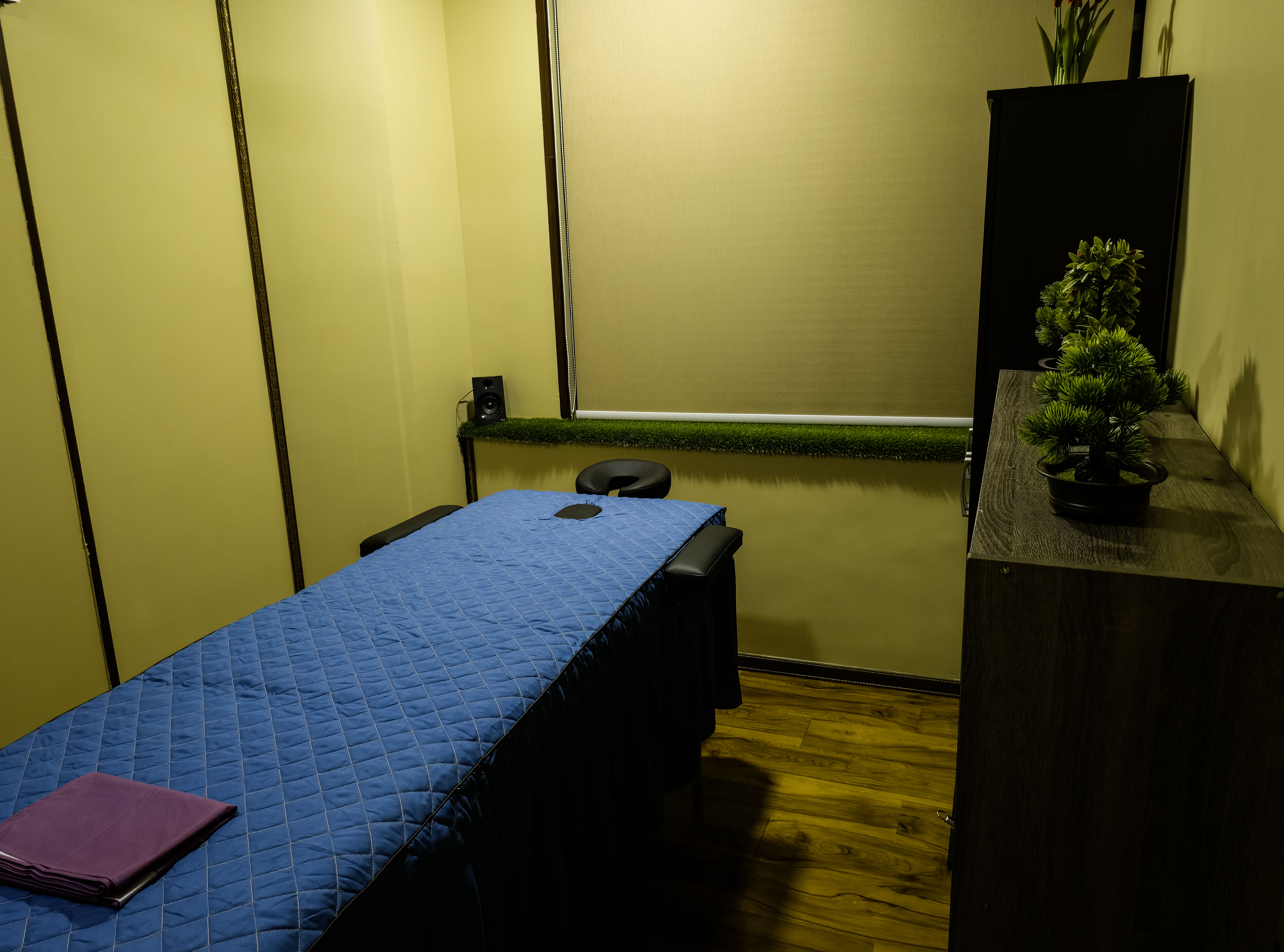 Uyirmay room is a small simple room for Satyam Shivam Nath’s selective physical therapy & treatment. The room is private, with healing fragrance and sounds for best effects during the therapy process.
