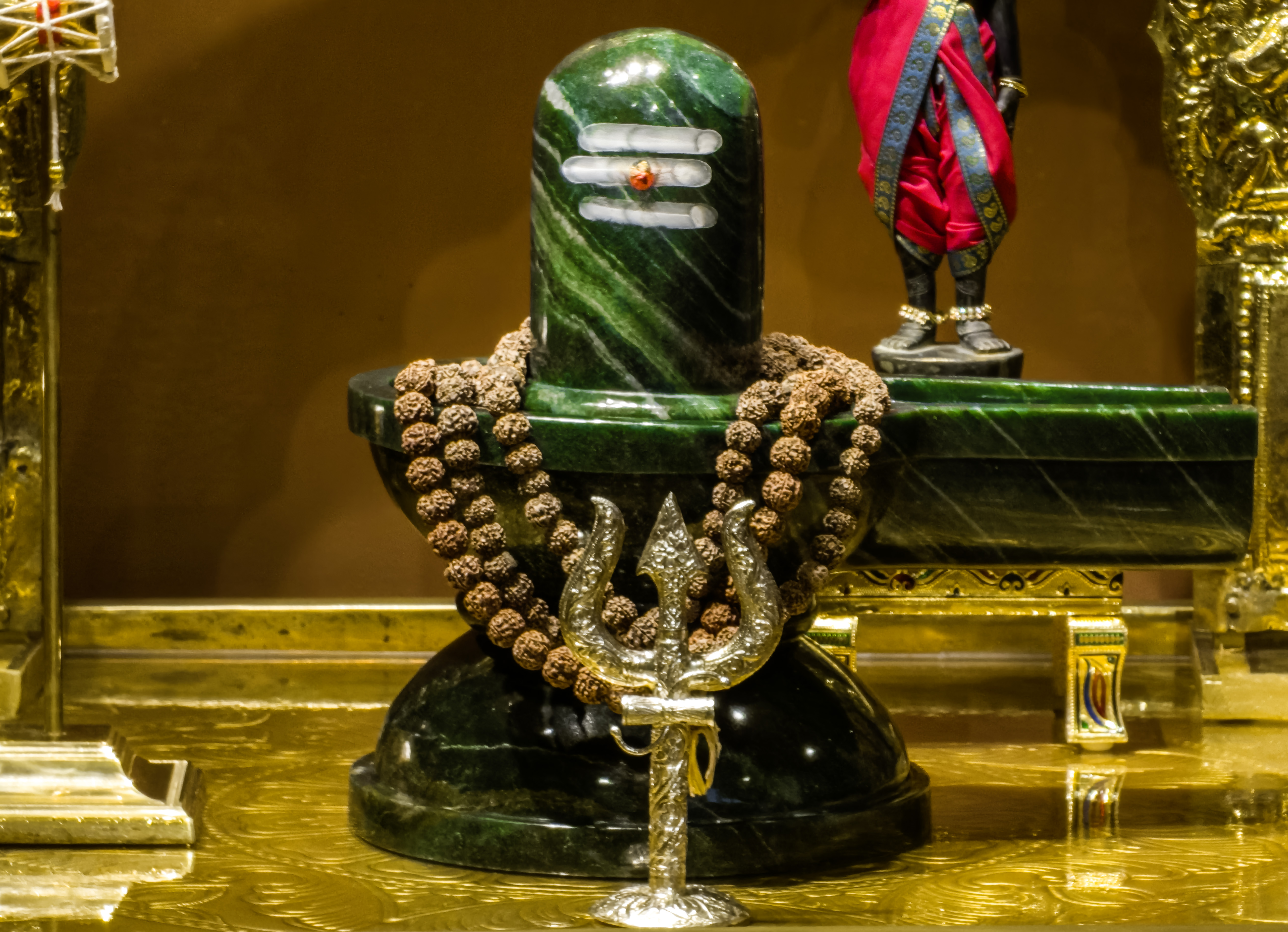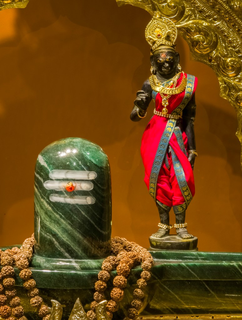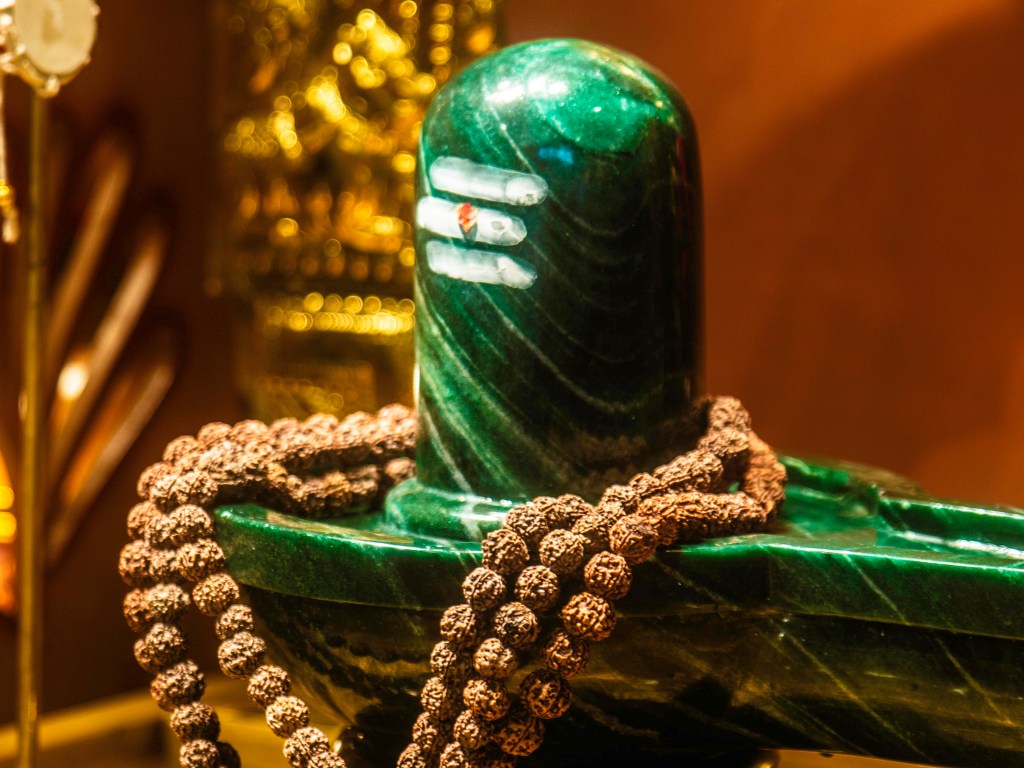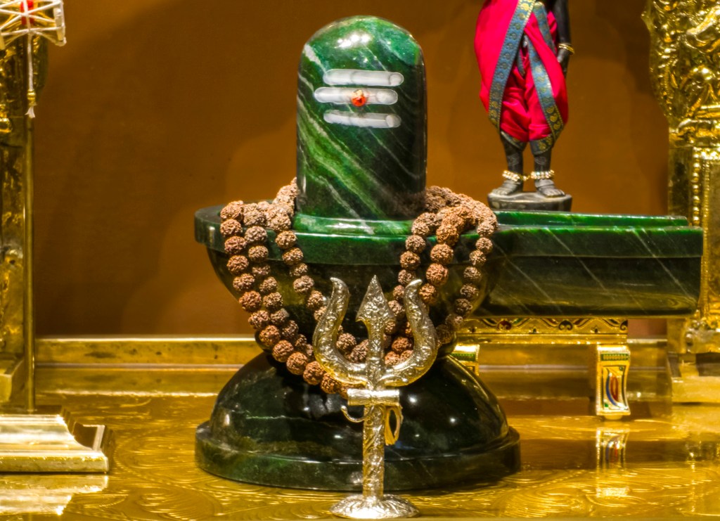 SRI SRI BHOLENATH is made of Maragatham Stone. It is one of the only few Maragatham Shivling of this size in the whole world.