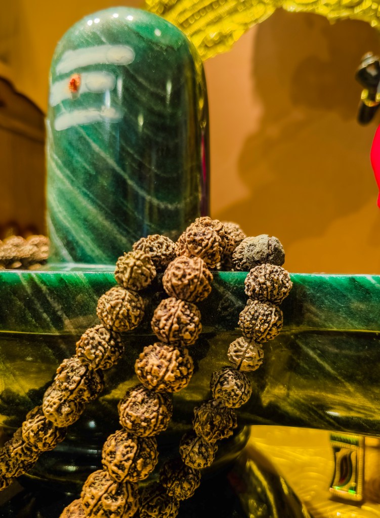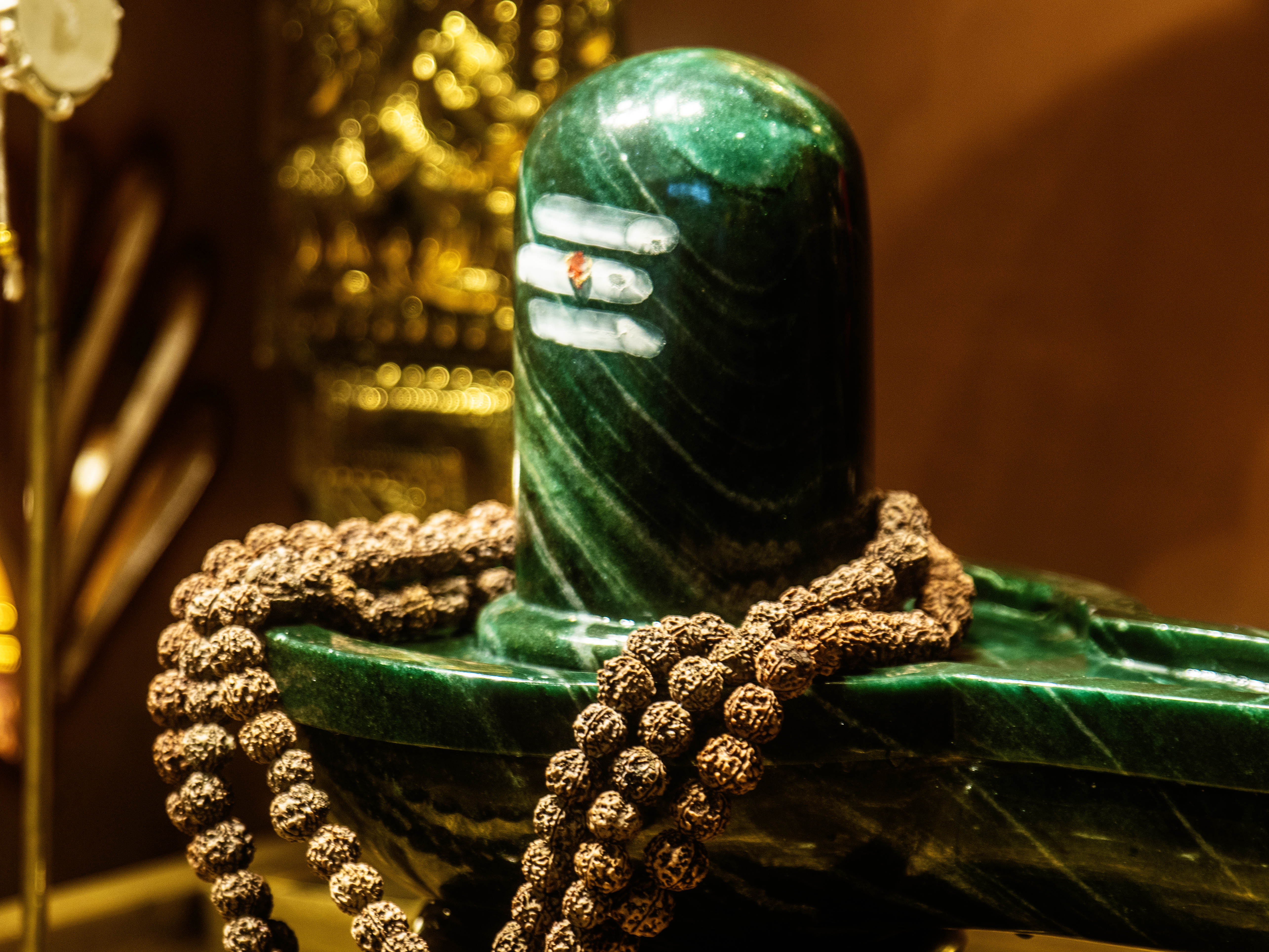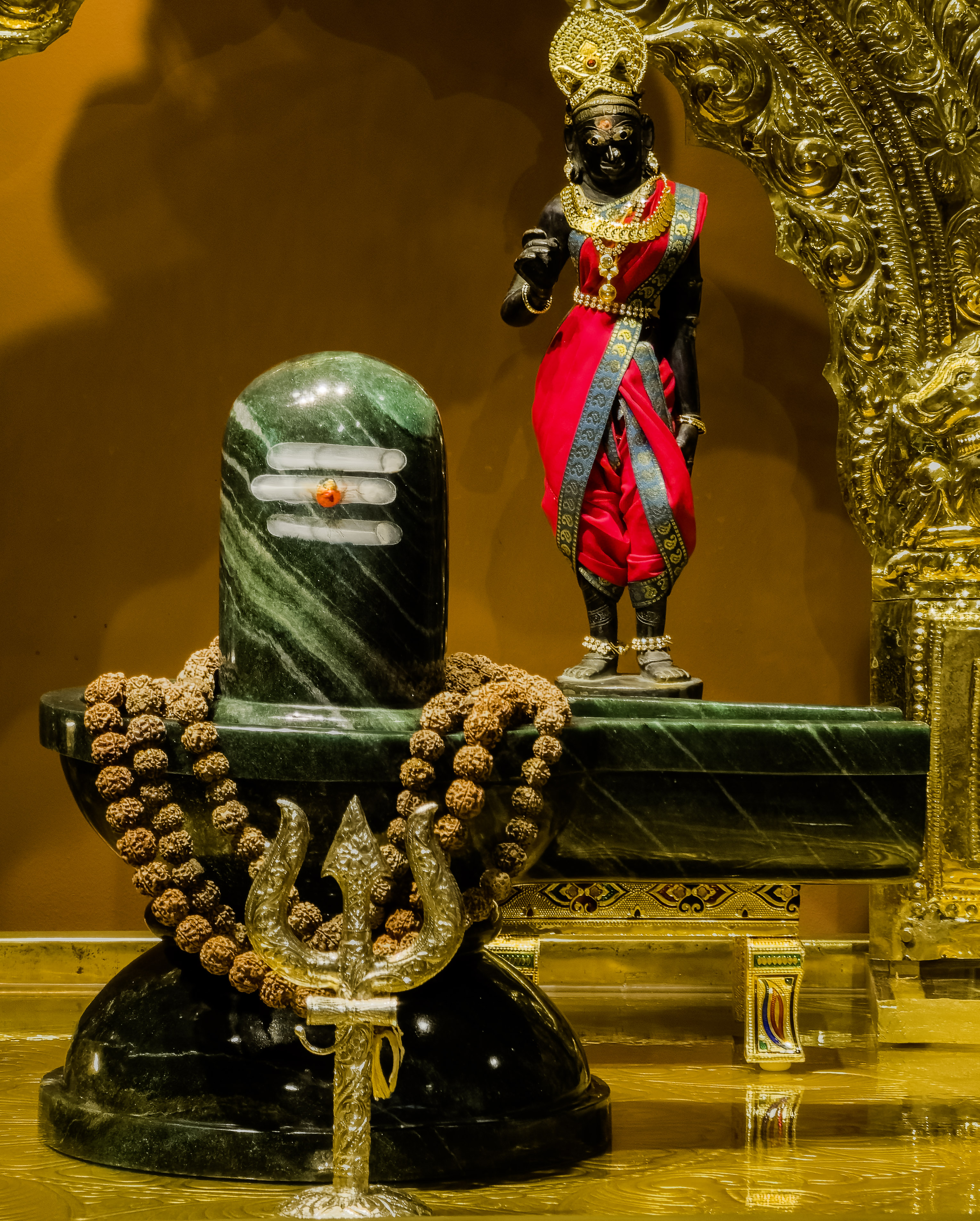 SRI SRI BHOLENATH is made of Maragatham Stone. It is one of the only few Maragatham Shivling of this size in the whole world.